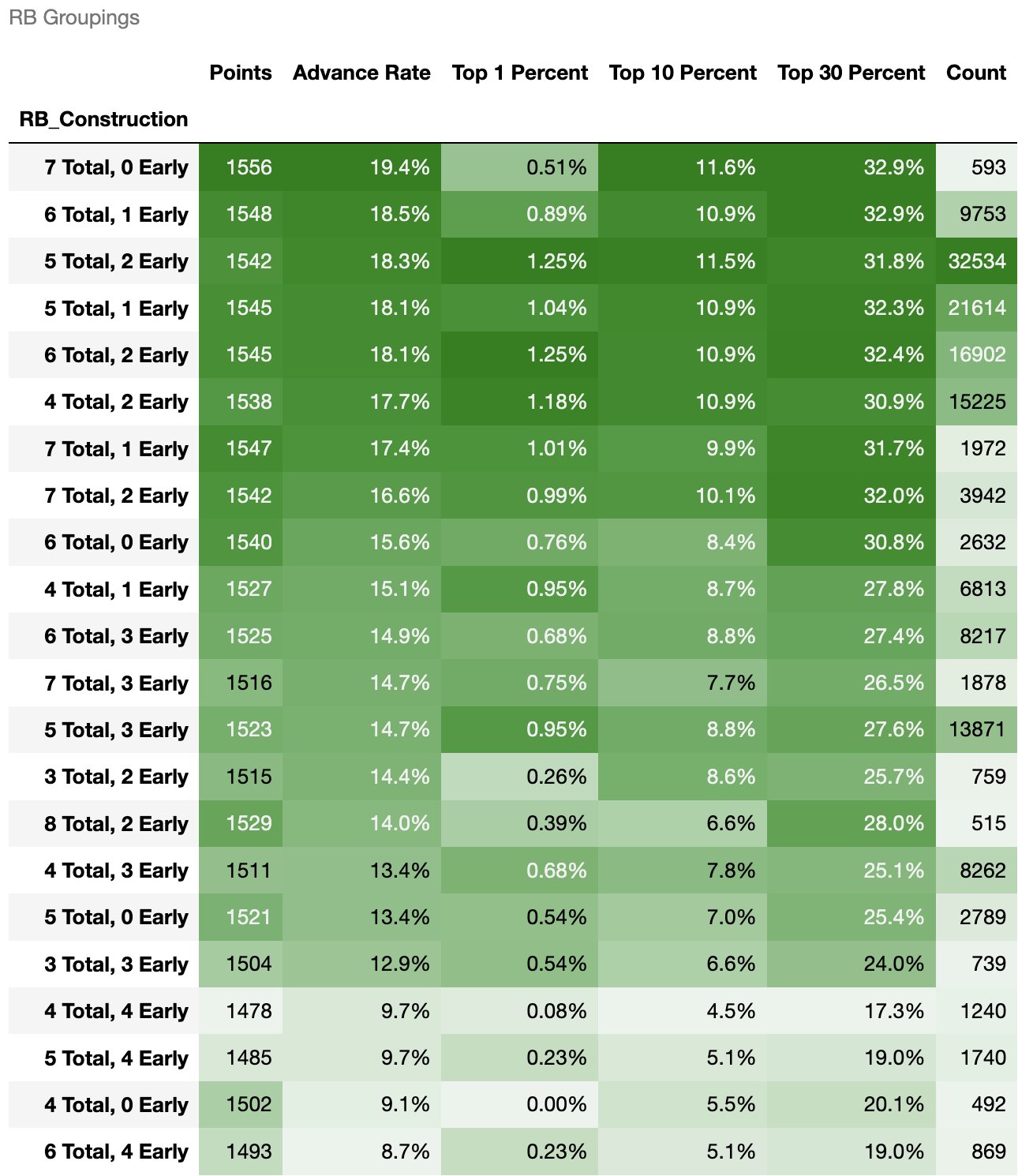 Michael Leone On Twitter Here You Can See Advance Rates For Some Zero Or Hero Rb Teams In This Image Early Simply Refers To The First 5 Rounds They Did Well But